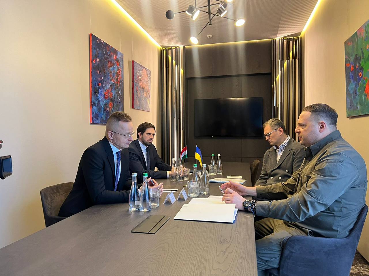 Andriy Yermak noted on Telegram: "Together with the Minister of Foreign Affairs of Ukraine, Dmytro Kuleba, we are meeting with the Minister of Foreign Economy and Foreign Affairs of Hungary, Péter Szijjártó, and his team. We are working to improve relations, and an open and constructive dialogue is needed. We are ready".