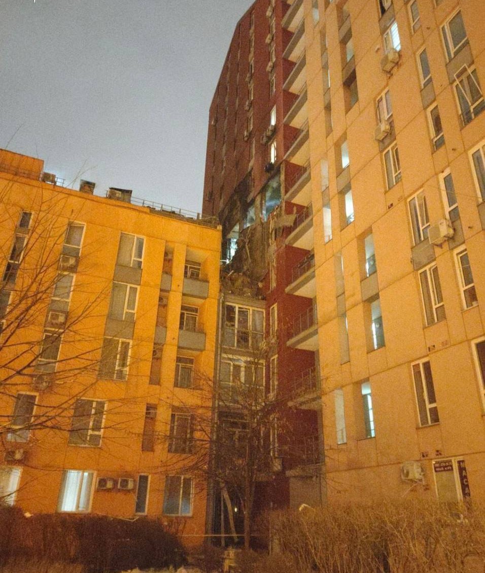 In the Pecherskyi district, as a result of falling UAV debris, the facade of a nine-story residential building was partially destroyed. A non-residential multi-story building was also damaged.