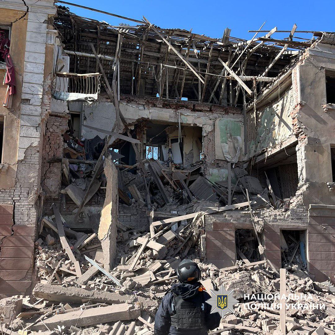 Russians carried out four strikes with KAB-250 bombs and three drones on Sloviansk: four civilians were killed, 21 people were injured, including two children. Fifteen apartment buildings, a single-story house, two educational institutions, a municipal enterprise, three non-residential premises, a gas pipeline, and 12 civilian cars were damaged.