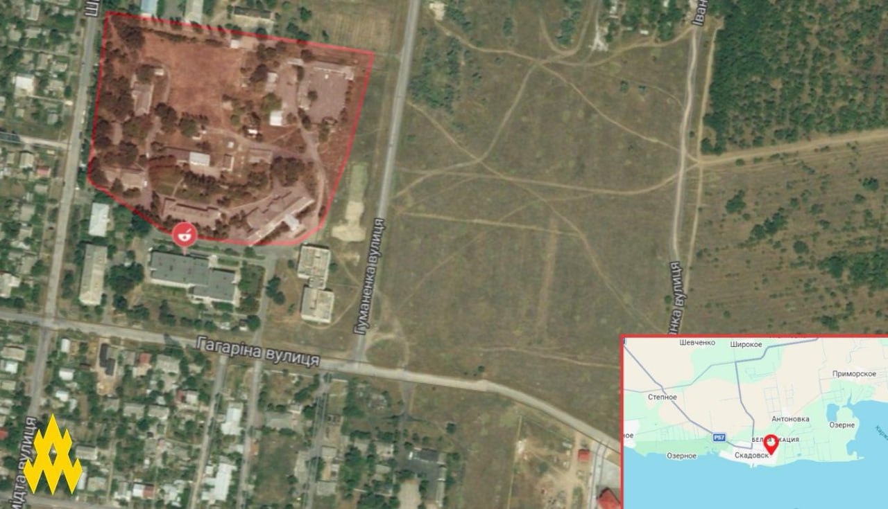 Agents of the movement recorded that russian military personnel occupied the building of a closed hospital in Skadovsk to deploy a command headquarters for a unit. The premises show active movement of servicemen, operation of communication equipment, and signs of a functioning command post.