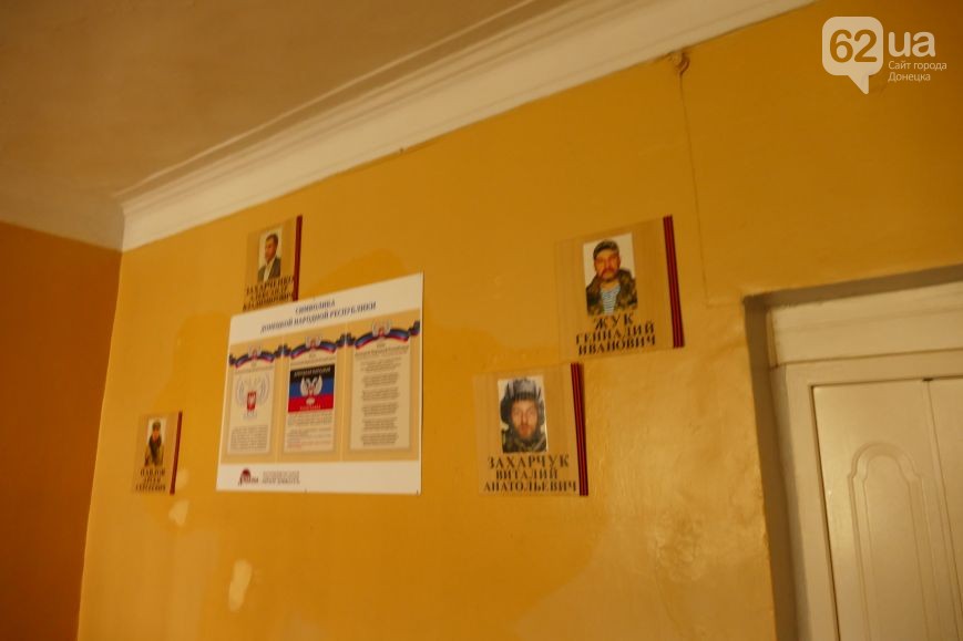 In the main top photo, in one of the occupied Donetsk schools, you can see a photo of the leader of the "DPR" Alexander Zakharchenko, below – a photo of the militant Motorola - Russian Arsen Palov.