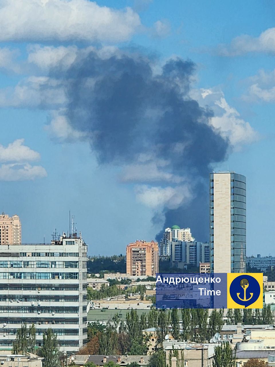 Photos shared by local residents on social media show plumes of black smoke visible from various parts of the city. There are also reports of explosions in the Kirovskyi district.